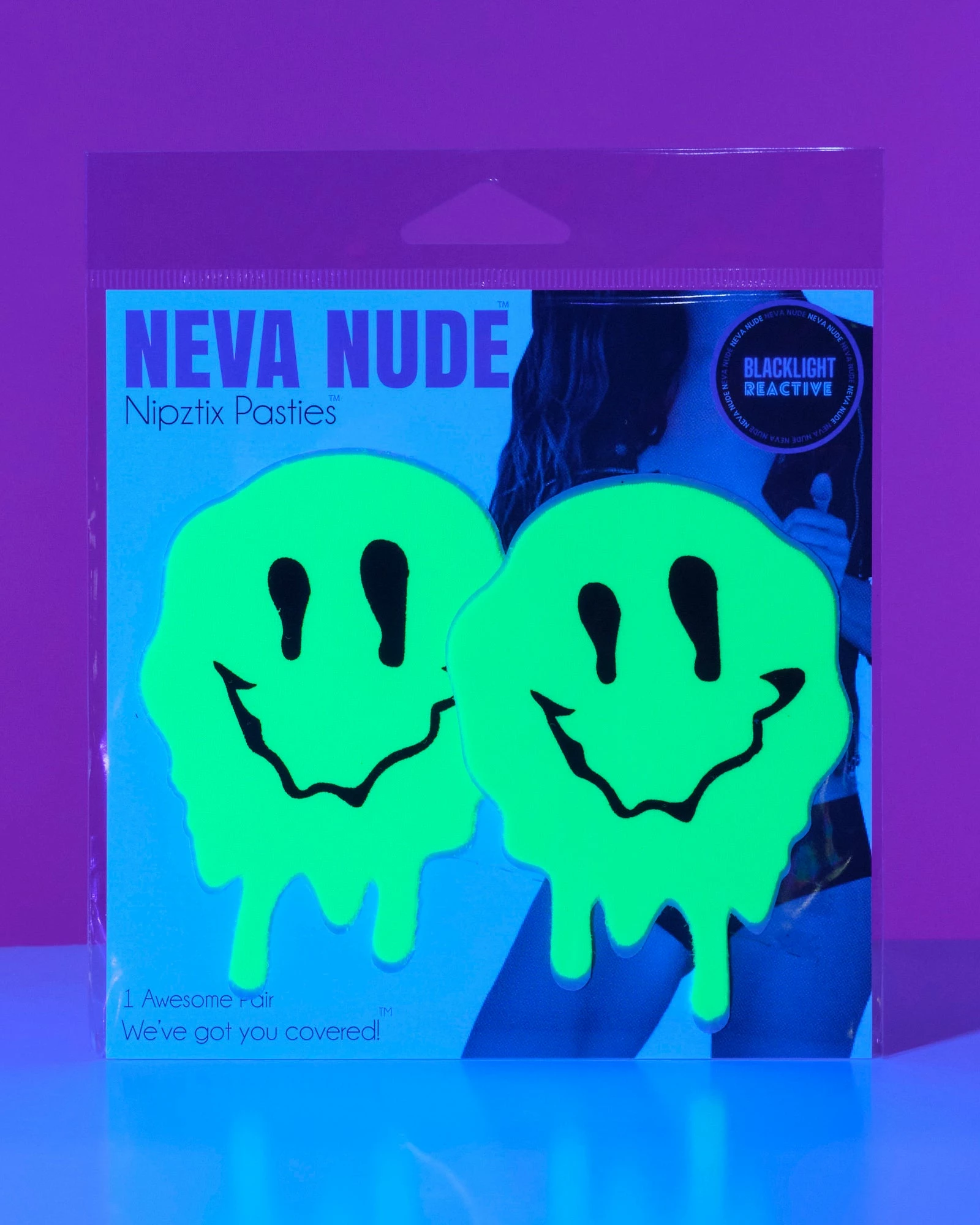 Be the first to review “Neva Nude Drip Smiley Neon Green UV Reactive Pasties” Cancel reply